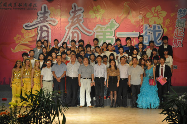 金秋的南湖,别样的欢腾。9月17日晚7:00,交通学院2012年迎新生文艺晚会在大学生活动中心隆重举行。校党委委员郑柏松,黄冈宏达驾校校长黎忠平,学工处副处长徐火军、焦爱新,交通学院党总支书记钟彬杉、院长张红英、党总支副书记黄忠及近700余名师生观看了演出。