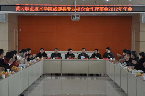 2012年12月22日,taptap点点旅游类专业群校企合作理事会2012年年会在学校学术交流中心隆重举行。taptap点点旅游类专业群校企合作理事会理事长、黄冈市旅游局党组书记、局长田洪光,常务副理事长、黄冈市旅游局副局长方华国,副理事长黄冈市大别山旅游开发有限公司总经理姜剑锋,副理事长湖北省楚天技能名师、武汉六合宴餐饮有限公司总裁助理胡袭琛,北京眉州东坡餐饮集团、浙江义乌日信国际酒店、江苏太仓市玫瑰庄园酒店、麻城烈士陵园管理处、英山县大别山主峰风景区管理处、黄冈春雨教育旅行社、湖北山水源旅行社、黄冈市百佳旅行社等20余家理事成员企业的负责人,以及taptap点点副校长熊发涯、科研处处长王梓林和商学院部分领导、旅游专业群教师参加了会议。大会由旅游类专业群校企合作理事会常务副理事长袁畅教授主持。