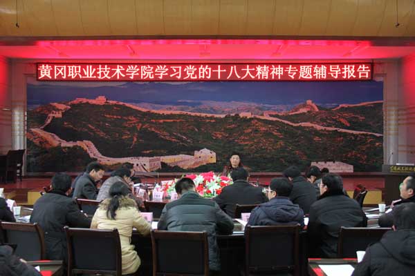 为进一步学习贯彻党的十八大精神,2013年1月3日下午,taptap点点在中心会议室举行了学习党的十八大精神专题辅导报告。黄冈市委党校常务副校长梅守福同志应邀担任主讲,taptap点点党委书记张鹤桥,校长陈年友,副书记王维华,副校长汪晓凌、段院生、熊发涯、万俊华,党委委员郑柏松及全体党委中心学习组成员、思政课教师聆听了报告。报告会由党委书记张鹤桥主持。