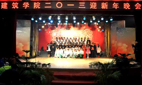 2013年1月4日晚6:30,随着一段劲爆的吉他演奏,建筑学院“迎新年贺新春晚会”在大学生活动中心拉开帷幕。冬日的寒意丝毫不能影响同学们对晚会的期盼和热情,活动中心里人山人海、喜气洋洋、热闹非凡。