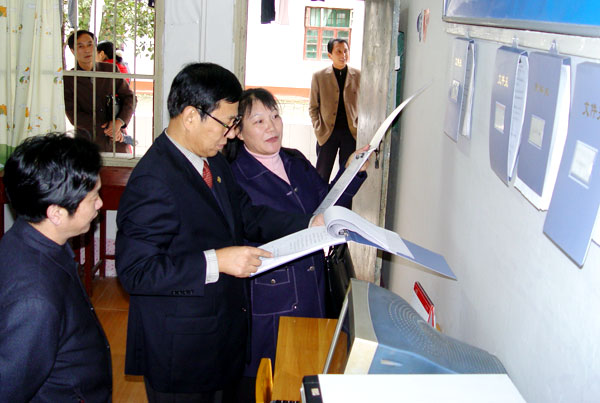 学院党委书记涂普生同志在查看学生寝室工作记载情况