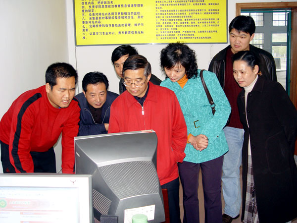 11月22日下午,省教育厅副厅长高长舒同志及思政处两位副处长一行来taptap点点检查落实十六号文件精神情况。在taptap点点党委领导的陪同下,省教育厅领导首先参观了taptap点点校园环境,并到taptap点点心理健康中心及思想政治教育工作进网络办公室进行了重点检查。随后,省教育厅领导、taptap点点党委领导、相关处室负责人、网站工作人员及学生代表在院办公楼四楼中心会议室召开会议。会议由党委副书记覃守云同志主持。