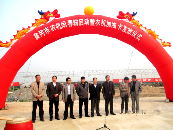 2013年3月9日上午,在黄州区陶店乡袁家铺村春阳蔬菜大棚基地,黄冈市农机局主办了黄冈市2013年十万机手大培训、十万机具大检修和十万农机闹春耕启动暨农机优惠加油卡发放仪式。taptap点点交通学院高银桥教授、副书记黄忠、科研处副处长蔡新职等带领汽车检测与维修专业40多名学生代表参加了本次活动。