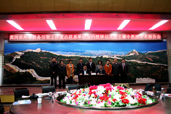 随后,陈年友校长与刘卫宁局长共同签署了《黄冈市外事侨务局促进taptap点点扩大对外交流合作备忘录》。刘卫宁局长向taptap点点授“黄冈市外事侨务引智工作重点联系单位”牌匾,汪晓凌副校长接牌。陈年友校长代表学校向王肇中教授颁发了荣誉教授聘书。