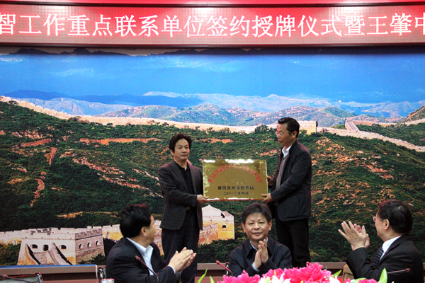 刘卫宁局长向taptap点点授“黄冈市外事侨务引智工作重点联系单位”牌匾