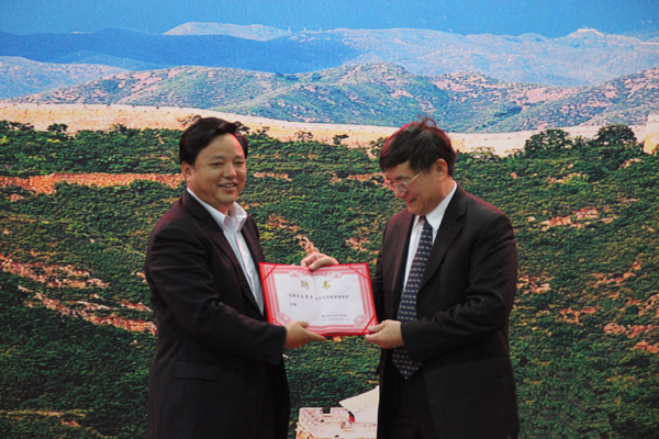 陈年友校长代表学校向王肇中教授颁发荣誉教授聘书