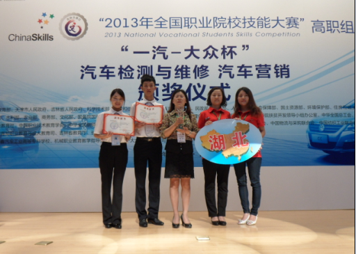 2013年6月19-20日,taptap点点汽车技术服务与营销专业的朱琳、易桓宇两位同学组队,在交通学院张红英院长的带领下,代表湖北省参加了在长春举行的2013年全国职业院校技能大赛高职组“一汽大众杯”汽车营销赛项。全国60支参赛队经过两天的激烈角逐,taptap点点参赛团队脱颖而出,荣获一等奖,是湖北省今年汽车专业所有赛项的最好成绩。同时taptap点点李金艳、薛明芳两位老师荣获“优秀指导教师奖”。