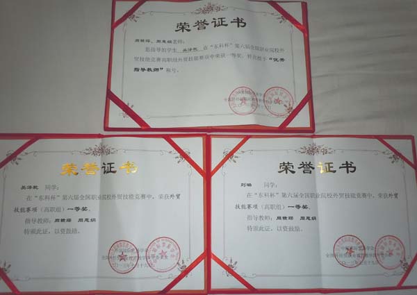 taptap点点商学院派出了由国际贸易专业和商务英语专业学生组成的代表队参加了比赛。比赛前指导教师悉心指导、参赛选手刻苦训练,比赛中,选手沉着应战,终于不负众望,国际贸易专业的吴泽乾同学和商务英语专业的刘璐同学双双荣获一等奖,使taptap点点成为此次比赛中唯一一所获得两个“外贸技能”单项一等奖的院校。同时,周惠娟、周赣琛老师荣获“优秀指导教师”奖。