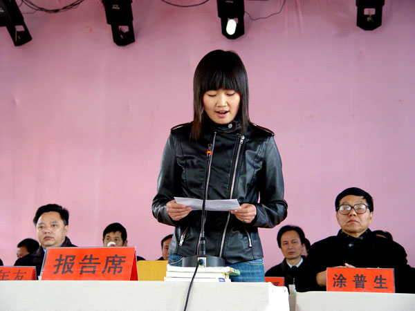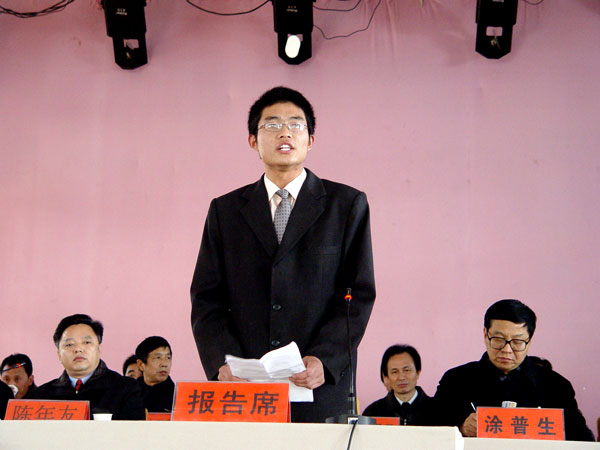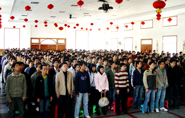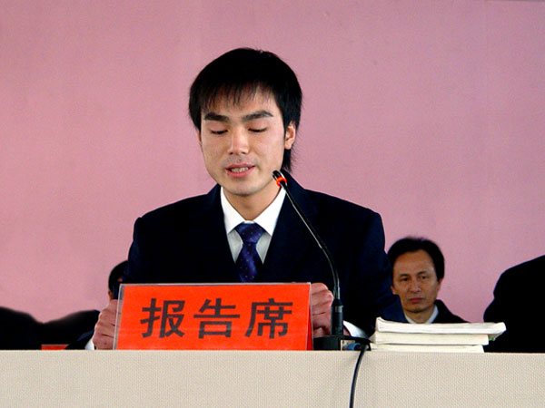 会议由院长陈年友同志主持,随着庄严的《国歌》声的奏响,大会隆重开幕。首先由就业学生代表发言,其文字激扬,感情真挚,对母校的感激之情难以言表,“面对恩师,我们想说:一日为师,终生不忘;面对同窗,我们想说:一朝同窗,一世朋友”,接着是在校生代表激情洋溢的良好祝愿,其次是教师代表陈国清老师言真意切的谆谆教导。
