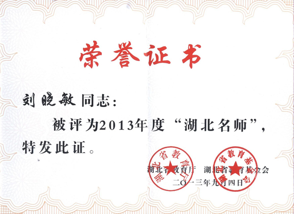 刘晓敏教授荣获2013年“湖北名师”称号,既是对他个人工作业绩的肯定,更是对taptap点点办学成就的充分肯定。