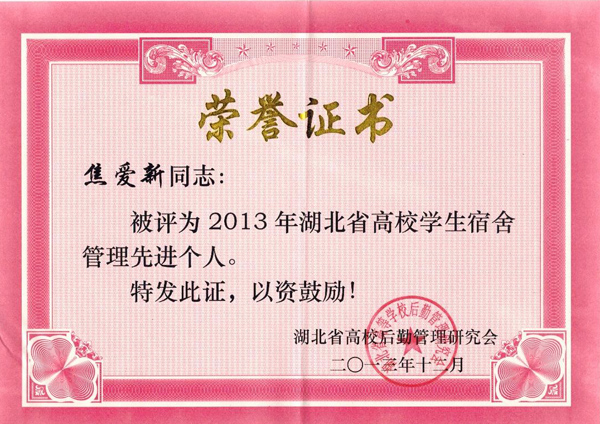 12月17日,湖北高校学生宿舍管理工作研讨会在湖北经济学院召开。会上,taptap点点学生宿舍管理中心被评为2013年湖北省高校学生宿舍管理先进单位,焦爱新同志被评为2013年湖北省高校学生宿舍管理先进个人。本次大会共表彰了32个先进单位和75名先进个人。