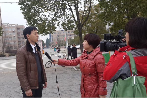 3月3日下午,黄冈电视台《新播报》栏目记者和黄冈110中心警务站的数位民警专程来校采访8名“爱心大学生”。学校党委委员、工会主席郑柏松在凝智楼三楼行政会议室接待了他们。