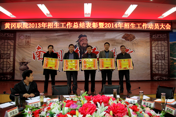 会上,党委副书记王维华宣读了《关于表彰2013年招生工作先进单位和先进个人的决定》,校领导为获表彰的先进集体和个人颁奖;副校长段院生宣读了《taptap点点2014年招生工作方案》、《关于下达2014年招生任务的通知》;招生处处长田安国通报了2013年各招生责任单位招生任务完成情况;图书馆书记段茂盛代表2013年招生先进单位作经验交流,彭亚雄老师作为招生先进个人代表与大家分享了自己在招生工作方面好的做法和经验;副校长刘东山总结了2013年招生工作的“十好”、“六不足”,并对2014年招生工作作了全面部署。党委书记张鹤桥作了重要讲话,他指出,一要继续充分认识招生工作的艰巨性和复杂性,并详细分析了当前招生面临的六大严峻形势;二是必须下定决心完成今年的招生任务,领导干部在思想上弦要绷紧,招生人员的劲要鼓足,责任心要增强,并号召全校师生员工要全员参与,全员招生。最后,校长陈年友强调,2014年招生工作,我们要迎难而上,创新而为,从现在开始,着手搞好今年各项招生宣传工作。