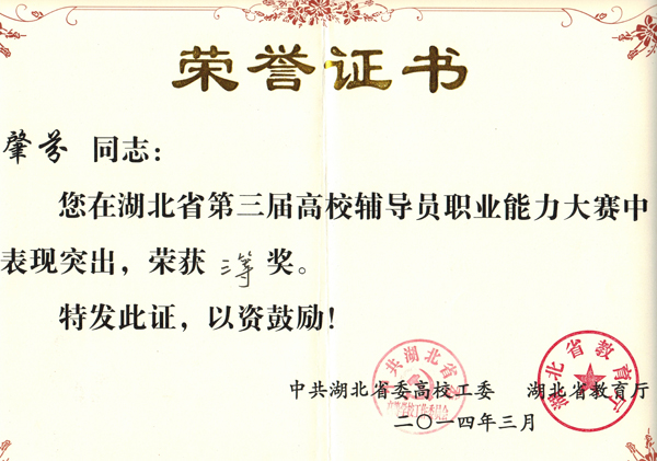 肇芬老师在本次大赛中凭借扎实的理论功底和精湛的学生活动组织能力,从全省参赛的153名辅导员中脱颖而出,获得三等奖。