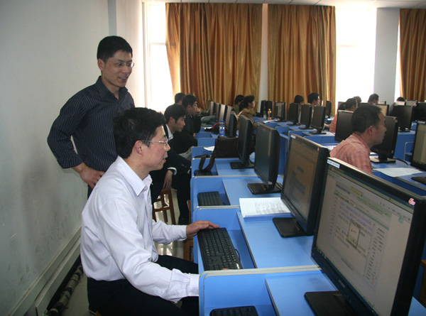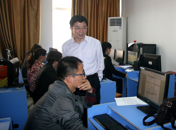 2014年4月3日下午,干部及教师信息化应用能力的第一批考核在汇贤阁21、22机房进行,电子信息学院58名教职员工参与了本批次的测试。副校长熊发涯教授巡视了考核现场,并以身作则,认真参与了本次考核。