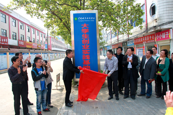 最后,王建农和张鹤桥共同为“黄冈职院大学生创业实践基地”揭牌,并参观了大学生创业实体店和生物化工学院大学生创业孵化项目。
