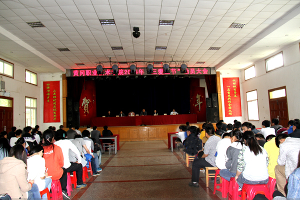为认真落实立德树人的根本任务,加强青年学生的素质教育,培育和践行社会主义核心价值观, 2014年4月17日下午2点30分,学校在大学活动中心召开了深入开展“爱学习、爱劳动、爱祖国、践行中国梦;节粮、节水、节电”“三爱三节”活动动员大会。副校长熊发涯,校党委委员、工会主席郑柏松,后勤服务与保障处党总支书记黄正东,学工部部长熊楚舒,团委书记杨勇,党务工作部副部长侯利平,各教学学院学生工作负责人,思政课部老师和辅导员以及600多名学生代表参加本次动员大会。大会由郑柏松主持。