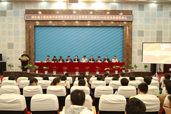 4月19日晚6时,湖北省土建类专业教学指导委员会成立大会暨湖北省第三届建筑CAD技能竞赛颁奖典礼在武汉城市职业学院学术交流中心举行。武汉城市职业学院党委书记李海燕致贺词。湖北省职教学会教学委员会主任、taptap点点校长陈年友教授宣读湖北省土建类教学指导委员会成立文件,taptap点点副校长熊发涯教授当选为土建教指委主任,建筑学院院长刘晓敏教授为常务副主任兼秘书长。省教育厅职教中心主任朱圣芳和职成处副处长余弢到会祝贺,为获奖个人和单位颁奖,并发表热情洋溢的讲话。