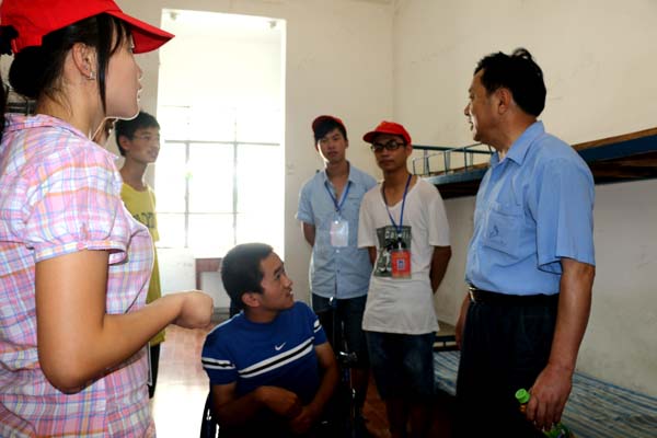 陈年友一行到寝室后,首先送上了两套全新的生活用品,并详细地了解他们的生活状况,徐盼的父亲握着陈校长的手,非常激动地说:给学校领导添麻烦了,感谢领导对徐盼的重视和关心。陈校长坐下来如家人般同徐盼父亲倾心交流,陈校长问他们来校后有哪些困难,希望他们能提出来,学校将会尽最大努力帮助解决。徐盼和他的父亲将来校后的事情都一一告诉陈校长,说黄冈职院真是一个温暖的大家庭,领导老师有爱心,学长学姐有热心,自己对大学生活更是充满了信心。陈校长问徐盼是因为什么原因报读黄冈职院的,徐盼说:我填志愿之前就在网上认真查阅了很多高职院校的信息,最后锁定了黄冈职院,是因为黄冈职院的人文关怀暖人心,尤其是陈校长多年多次关心资助贫困学生的报道吸引了我,我是一个特殊个体,只有在温暖的土壤里才能过得平静。来到学校后,更加坚定了我的信心和决心,因为学校为我和父亲单独安排了一间一楼的寝室,卫生间和生活用水都很方便,现在已经有学生志愿者走进了我的生活,他们阳光健康,让我感觉很充实,而且我父亲现在可以在学校工作,我们的生活也有保障,所以,我感觉特别幸福快乐,谢谢学校的关心和安排,我一定会好好努力,我相信我的大学会与众不同。