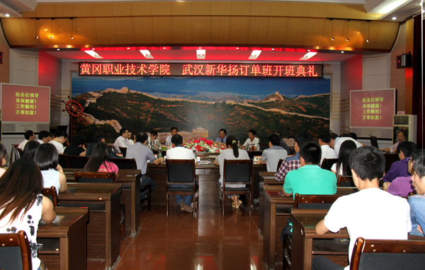 2014年9月23日,由武汉新华扬生物股份有限公司和taptap点点共同举办的“武汉新华扬”订单班开班仪式在凝智楼中心会议室隆重召开。武汉新华扬生物集团董事长詹志春、科技生产基地副总经理陈攀、董事长秘书吕文娟、武汉新华扬生物股份有限公司人力资源部经理秦飞虎,taptap点点校长陈年友、副校长段院生、校长助理刘明涛,教务处、校企合作处、学工处、就业处负责人,生物化工学院党总支书记余亮彬、院长陈全胜、副书记程喜荣,生物技术及应用、生物制药技术、畜牧兽医3个专业的专业主任及教师代表、订单班全体同学参加了此次活动。仪式由段院生主持。