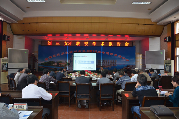 下午,刘三女牙教授为taptap点点教授、中层以上干部以及各专业负责人作了《教育信息化演进趋势》主题报告,报告会由党委书记张鹤桥同志主持。刘教授通过大量的实例,对信息技术的应用、信息技术对教育产生的影响、信息技术与教育融合的趋势进行了全面、细致的分析,并着重对教育的全面数字化、教育与信息技术的多维度的融合、教育应用的“云”化、教育信息的量化、教育主体的重塑、教学的组织颠覆等趋势进行了深入的分析。