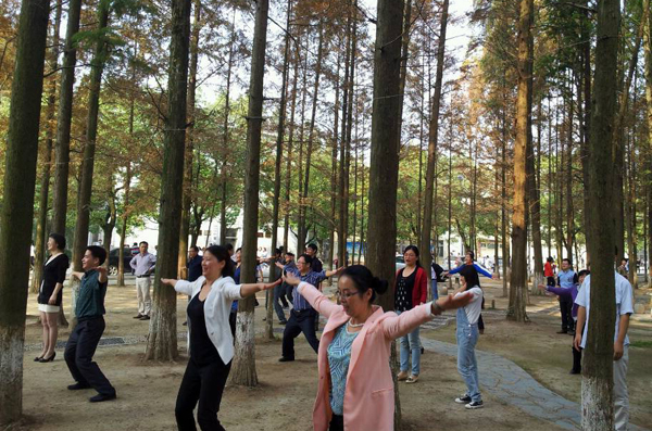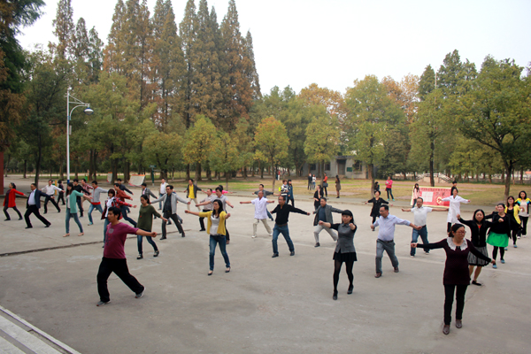 活动开展到现在,得到了广大教职员工的热情响应,整个校园充满活力,每天上午(10:00至10:20)课间操期间,在各校区的办公楼前,教学楼走廊等处都可以看到领导老师做操的身影,吸引了众多学生好奇和尊重的眼光,整个校园充满活力,笑脸多了,生活美了,距离近了,健身的意识浓了,在秋日阳光的照射下,教师光彩照人。