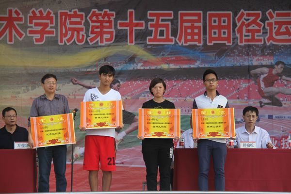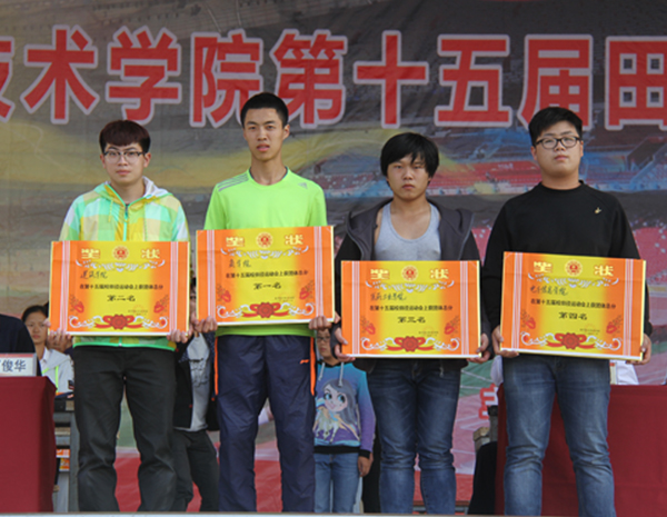 闭幕式上,副校长万俊华宣布了此次运动会比赛成绩。taptap点点商学院、建筑学院、医药卫生学院、电子信息学院分别获得团体总分前四名,公共课部获得优秀组织奖,交通学院、机电学院、生物化工学院分别获得精神文明奖。尤为可喜的是,个人比赛项目中一人打破了一项校田径运动会记录,一人保持了一项校田径运动会记录。