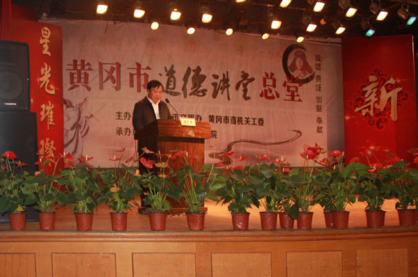 由taptap点点承办的黄冈市道德讲堂总堂第八次活动于10月30日在学校大学生活动中心隆重举行。黄冈市委宣传部副部长柳长青、市文明办副主任王保国、市直机关工委副书记石磊及科长李湘玄出席活动现场。校党委书记张鹤桥,校长陈年友,副书记王维华,党委委员、工会主席郑柏松,副校长刘东山,党委委员胡燕,校长助理刘明涛以及电子信息学院师生近800余人一同观摩活动。