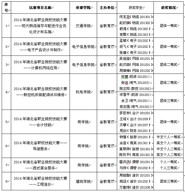 黄冈职院在2014年湖北省职业院校技能大赛中获奖情况表