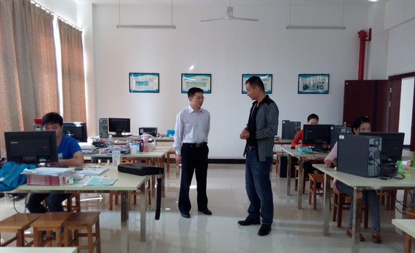 10月15日,副校长熊发涯观看校内第二次模拟竞赛