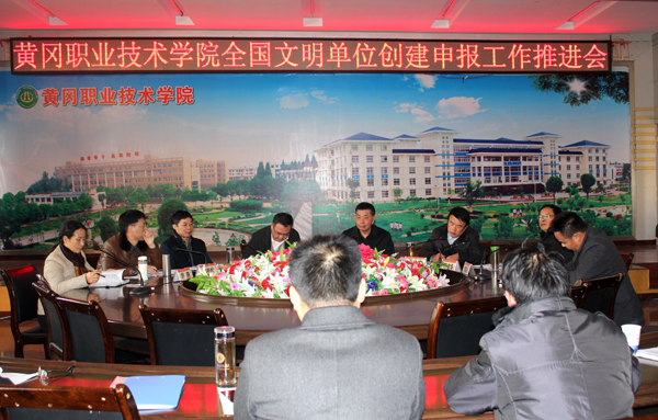 2014年12月5日,学校在凝智楼四楼中心会议室召开了黄冈职院全国文明单位创建申报工作推进会,旨在统一思想,明确任务,落实责任,攻坚克难,集中精力全力搞好学校创建申报的各项工作,全面展现学校全国文明单位创建的成效。全体校领导、全体中层干部(例会人员)、申报工作领导小组下设的各个工作组组长及成员参加了会议。