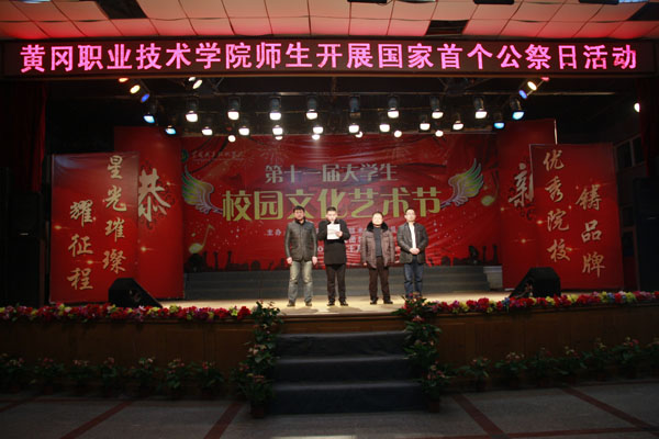 晚上,团委书记杨勇、团委副书记陈胜红,各教学学院党总支副书记、团总支书记以及500多名学生代表在大学生活动中心共同学习国家公祭鼎铭文。