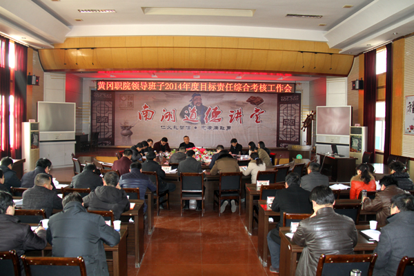 1月8日上午,黄冈市直领导班子2014年度目标责任综合考核组罗尚杰、左胜杨等一行9人来校检查指导工作。考核组一行首先在行政会议室查看了档案资料,随后,在中心会议室听取了工作汇报并组织了对校领导班子2014年度工作、校领导班子成员以及当年度提拔任用的副县级干部的民主测评。在校领导班子成员、中层干部及教工代表54人参加了会议。大会由校长姜安心主持。