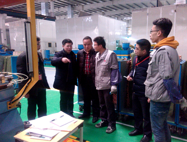 随后,熊发涯一行在周凌、李兴安的陪同下到生产车间看望实习学生,边了解企业的生产及技术革新情况,边与实习学生交流,了解他们在实习过程中的生活、工作、培训情况。当听到学生对实习单位及岗位很满意,在实习过程中收获很大,能够学到很多知识后,鼓励大家要珍惜机会,认真学习,锤炼自我,最终圆满完成此次综合实习任务。