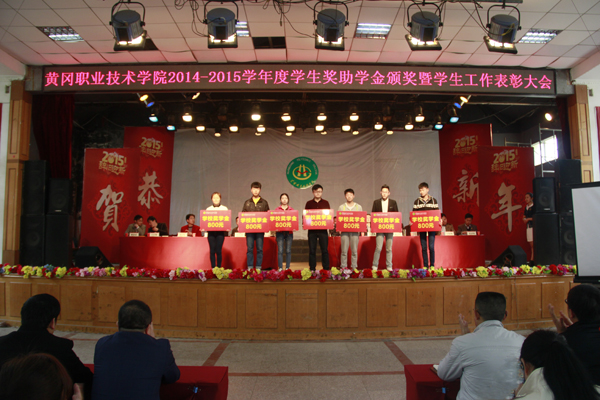 会议在庄严的国歌声中拉开帷幕。会上,刘明涛宣读了国家奖学金、国家励志奖学金、国家助学金、学校奖学金、学生突出贡献奖、学生工作先进单位等表彰文件,并对受表彰的先进集体和个人及受资助的全体同学表示热烈的祝贺。在欢快的乐曲声中,校领导为获奖获助的个人和单位颁发了奖状、奖牌、奖金,气氛隆重而又热烈。