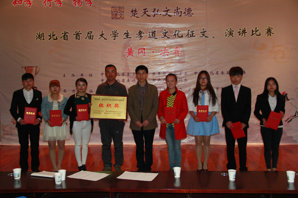 为深入贯彻落实党的十八大和十八届三中、四中全会精神,积极培育和践行社会主义核心价值观。2015年4月13日下午3点,由中共黄冈市委宣传部、黄冈市文明办、共青团黄冈市委、黄冈市教育局、黄冈市电视台联合主办的湖北省首届大学生孝道文化演讲比赛黄冈决赛在黄冈师范学院隆重举行。taptap点点党委委员、工会主席郑柏松,学工处副处长、校团委副书记陈胜红,校团委汲艳蕊老师带队参加了比赛。