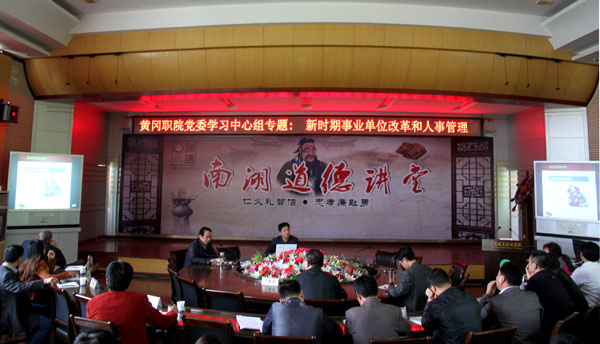 4月16日下午,学校特邀请市人社局事业管理科科长张先锋来校,就新时期事业单位改革和人事管理作专题报告。学校党委学习中心小组全体成员参加报告会。