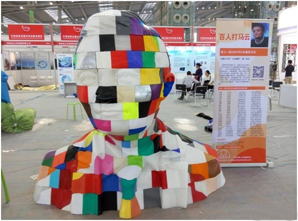 4月18日上午,深圳会展中心举行了3D打印博览会,其中2米高的“3D打印马云”成为全场焦点。中央政治局委员、国务院副总理马凯,广东省省委书记胡春华,广东省省长朱小丹等领导同志到现场参观了“3D打印马云”的设计作品。