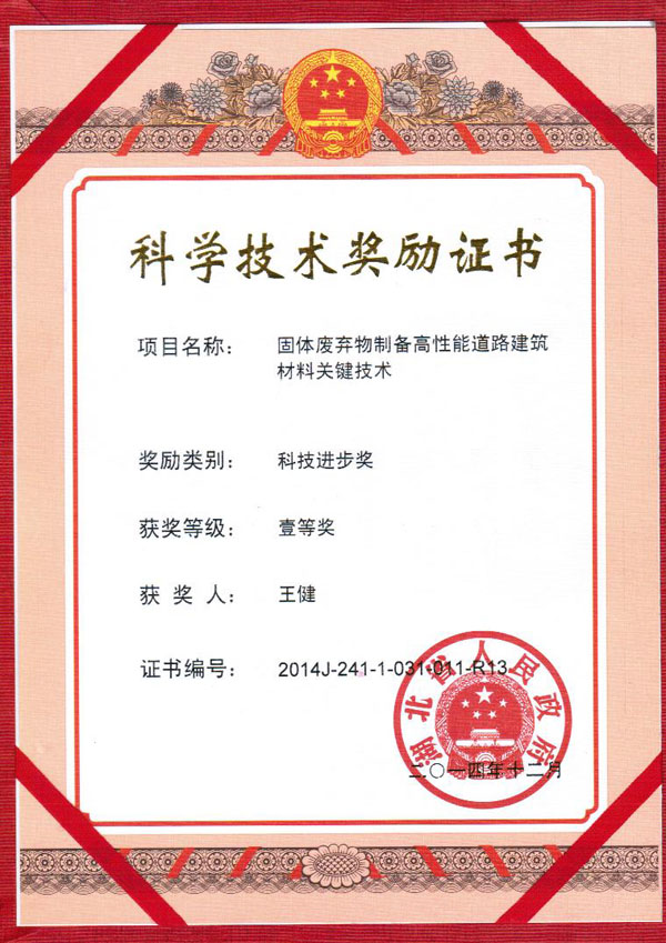 王健老师获奖的成果是《固体废弃物制备高性能道路建筑材料关键技术》。固体废弃物制备高性能道路建筑材料俗称“钢渣沥青”。该技术突破美欧垄断,为国内首创,已获5项发明专利。目前此项技术已正式宣告产业化,将大规模生产应用。