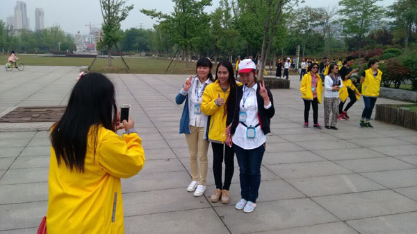 22日上午8点,营员们在华师集合,坐上开往黄州的大巴。此次春令营的营员主要来自新加坡和泰国。新加坡学生大都是中文系,所以中文讲得很好,也有较深的文化底蕴。而泰国的学生汉语大部分处于初级阶段,因此同志愿者和带队老师的交流主要用英文。其中有两个泰国学生修读的是中文系,因此能够掌握日常的交流用语。一路上营员们都比较兴奋,在车上唱歌或聊天。上午10点左右,大巴抵达目的地taptap点点,营员们在这里进行一天的参观和学习。