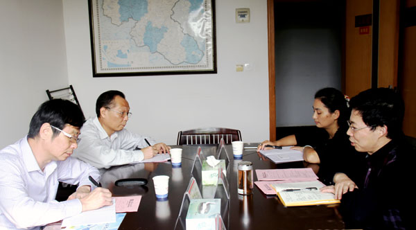 姜安心向广西经贸职业技术学院、柳州职业技术学院领导介绍学校情况