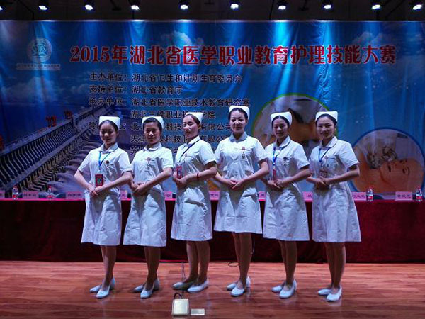 由湖北省卫生计生委主办、省教育厅支持的2015年湖北省医学职业教育护理技能大赛于2015年5月29日至31日在宜昌湖北三峡职业技术学院隆重举行。来自全省24所大中专职业院校的99名高、中职护理专业学生经过紧张激烈的角逐,最终taptap点点参赛队荣获高职组团体二等奖(总分第三名)、中职组团体三等奖的好成绩。在个人单项比赛中,taptap点点6名选手悉数获奖,其中高职个人全能一等奖1名、二等奖2名,单项赛一等奖2项、二等奖2项、三等奖5项;中职个人全能二等奖1名,单项赛一等奖1项、三等奖5项。这是taptap点点首次参加省内护理专业技能竞赛,能取得如此骄人战绩,真是可喜可贺。