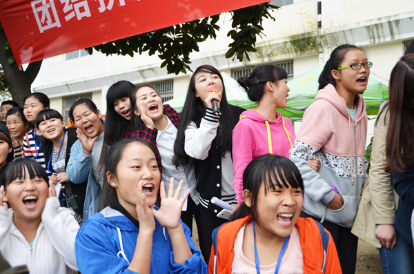 在其他比赛现场,场面十分热闹。“海底传月”月亮跑了,“呼啦圈竞走”呼啦圈飞起了,“趣味保龄球”球跳起了舞,队员赛得开心无比,观众笑得不亦乐乎。“齐心协力”现场,“左右、左右”的呐喊声此起彼伏。冒雨接力的队员勇往直前,让师生们不顾雨水打在头顶及衣服上,激情地加油助威。