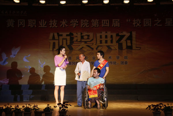 颁奖典礼在柔美的舞蹈《鲜花的祝福》中拉开帷幕。同时颁奖典礼采用视频播放与现场访谈的方式介绍了“校园之星”的典型事迹。他们中有学习刻苦、积极进取、获得国家奖学金的“学习之星”聂丽丽;有乐于奉献,拾金不昧的“服务之星”邓学欢;有在青春的道路上不懈追逐着艺术梦想的“才艺之星”李宇东;有勇敢坚强、积极乐观的“自强之星”徐盼,有助人为乐、奉献爱心的“道德之星”王小双……客观真实的事迹展播,真情流露的访谈,让在场师生震撼。最后,颁奖典礼在歌舞《青春的奔跑》中落下帷幕。