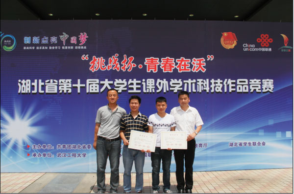“挑战杯”竞赛被誉为中国大学生科技的“奥林匹克”竞赛,是最具代表性、权威性、示范性、导向性的竞赛。湖北省第十届“挑战杯•青春在沃”大学生课外学术科技作品竞赛由团省委、省科协、省教育厅、省学联主办,武汉工程大学承办,参赛对象为在校专科生、本科生和硕士、博士研究生,参赛作品分为学术论文、社会调查报告、科技发明制作三类。本届共有省内64所高校的623件作品参赛,6月9日,入围终审决赛的311件作品在武汉工程大学进行展示,并接受来自中国科学院武汉分院、湖北省社会科学院等科研院所和企业的近40余名资深专家组成的评审团的终审问辩。taptap点点学生首次参加该项大赛,他们的作品从众多参赛作品中脱颖而出,得到了评审团专家的好评。