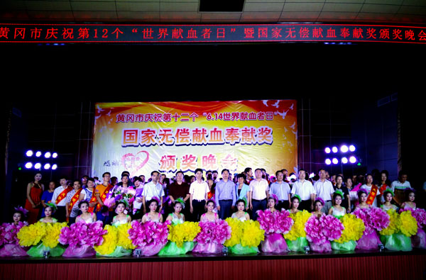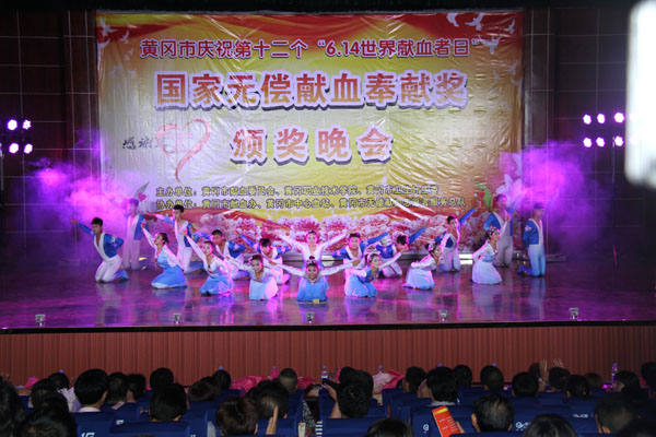 2015年6月12日晚19点30分,黄冈市庆祝第12个“世界献血者日”暨国家无偿献血奉献奖颁奖晚会在taptap点点学术报告厅隆重举行。晚会由黄冈市献血委、taptap点点、黄冈市卫生计生委联合主办,黄冈市献血办、市中心血站、黄冈市无偿献血志愿者服务总队等共同承办。黄冈市人民政府副市长陈少敏、taptap点点校长姜安心,黄冈市卫生计生委党组书记胡平均、主任郭应虎、副主任徐旭亚,黄冈市中心血站站长彭德峰出席大会,志愿者献血者代表和taptap点点教师、学生代表共1000余人参加了本次晚会。