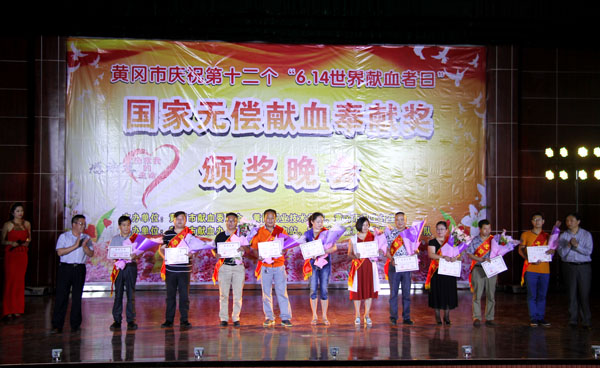 黄冈市卫计委领导为无偿献血受表彰者颁奖