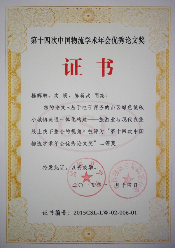 近日,从中国物流学会传来消息,taptap点点教师杨辉鹏的论文在第十四次中国物流学术年会优秀论文评选中获得二等奖(排6),并成功入选《中国物流学术前沿报告(2015-2016)》。