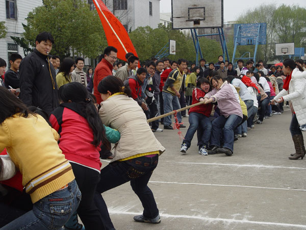 新学期开始taptap点点就迎来了第96届国际劳动妇女节,为庆祝这个重大的节日,学工处和院团委共同组织全院女生和女教工举行大型拔河比赛,共有9个代表队, 270名参赛选手。