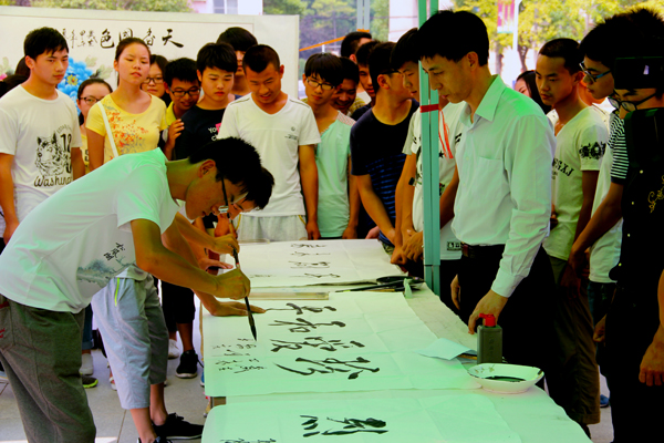 9月2日中午,学校举办了“纪念抗战胜利70周年书画比赛”,全校近2000名书画爱好者参加本次活动,遴选165副精彩作品在全校展示。画展围绕 “以史为鉴,共筑和平,实现中国梦”主题,以丹青笔墨的艺术形式,回望中华民族历经千难万险、波澜壮阔的八年抗战历程,缅怀革命先烈,弘扬抗战精神,歌颂了我国在实现中华民族伟大复兴“中国梦”的道路上取得的巨大成就,表达了人类呼唤永久和平的美好愿望。